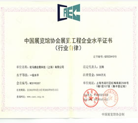 中國展覽館協會展覽工程企業一級資質證書